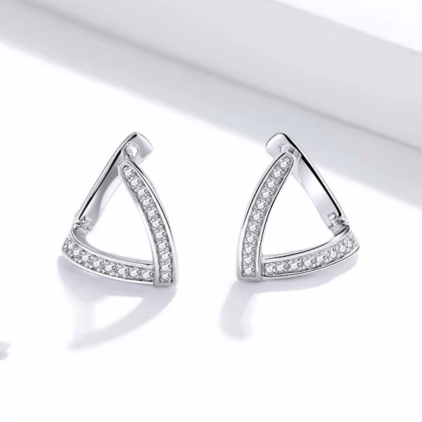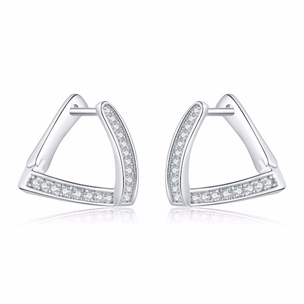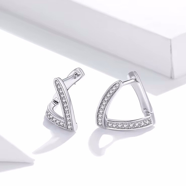 Ismerd meg ezt a lenyűgöző, geometrikus formavilágú ezüst fülbevalót, amely tökéletes választás minden modern nő számára! A 925 sterling ezüstből készült ékszer platinabevonattal rendelkezik, így nemcsak tartós, hanem elegáns is. A háromszög alakzat egyedi megjelenést kölcsönöz, míg a cirkóniumkristályok finom csillogása garantáltan magára vonja a tekinteteket.