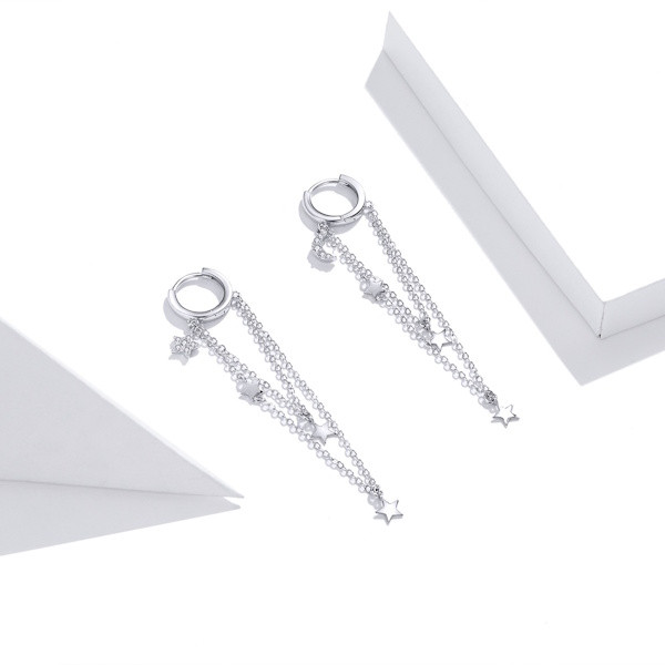 Ismerd meg az elegancia és csillogás tökéletes kombinációját ezzel az ezüst fülbevalóval! A 925 sterling ezüst alapú ékszer platinabevonattal és ragyogó cirkóniumkristályokkal díszítve garantálja a figyelemfelkeltő megjelenést. A fülbevaló hosszú kialakítása csillag alakzatokkal díszítve különleges ragyogást és eleganciát kölcsönöz viselőjének.