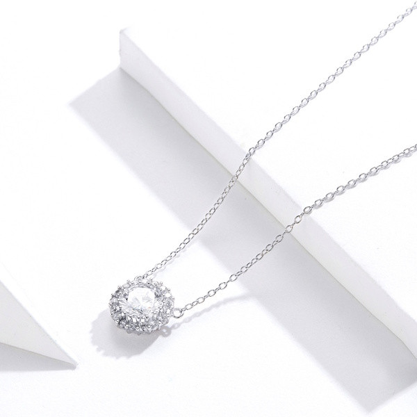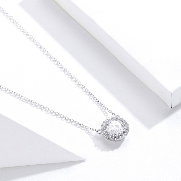 Fedezd fel az elegancia és a csillogás tökéletes harmóniáját ezzel az ezüst nyaklánccal, mely egyedi kristálymedállal díszített. A 925 sterling ezüstből készült lánc platinabevonatának köszönhetően időtálló ragyogást biztosít. A kör alakú medál a teljességet és az örökkévalóságot szimbolizálja, így nemcsak egy ékszer, hanem egy jelentőségteljes ajándék is lehet szeretteid számára.