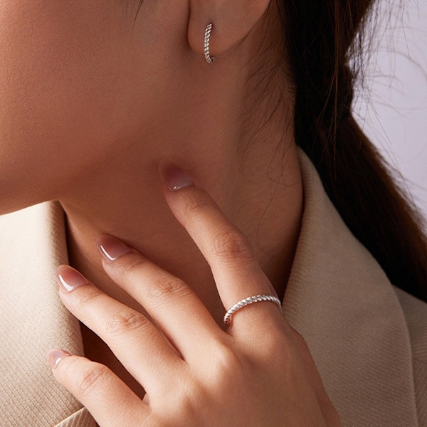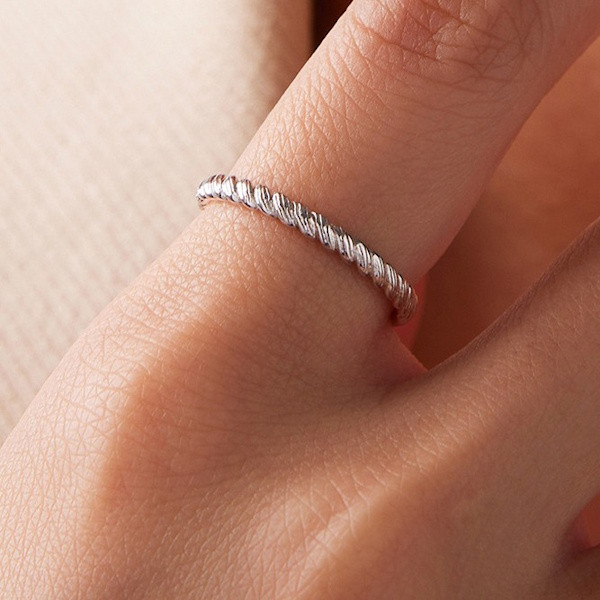 Ezüstből készült, állítható méretű női gyűrű platinabevonattal. Szélessége 0.22 cm, súlya 1.4 g.