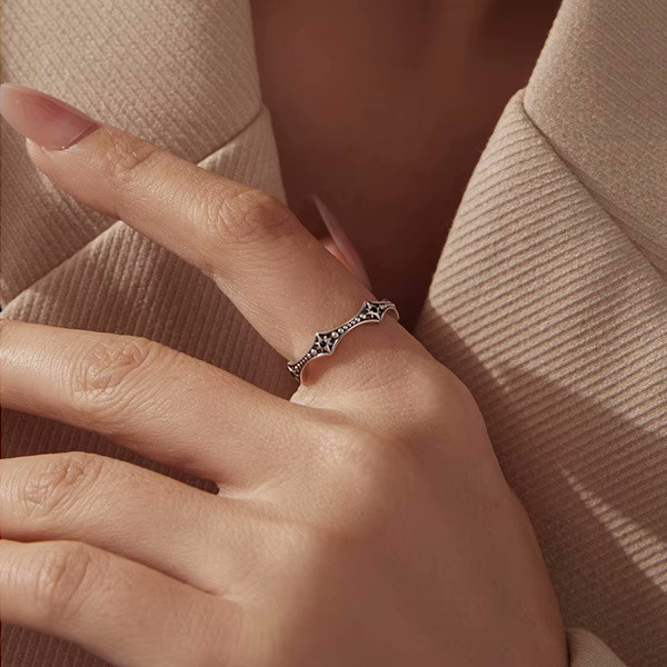 Oxidált ezüstből készült női gyűrű vintage stílusban. Szélessége 0.15-0.4 cm, súlya 1.6 g.