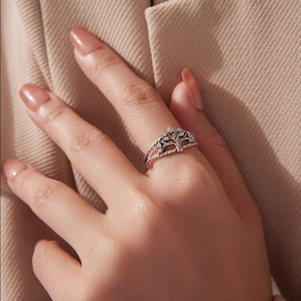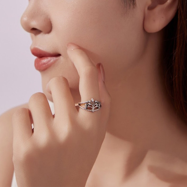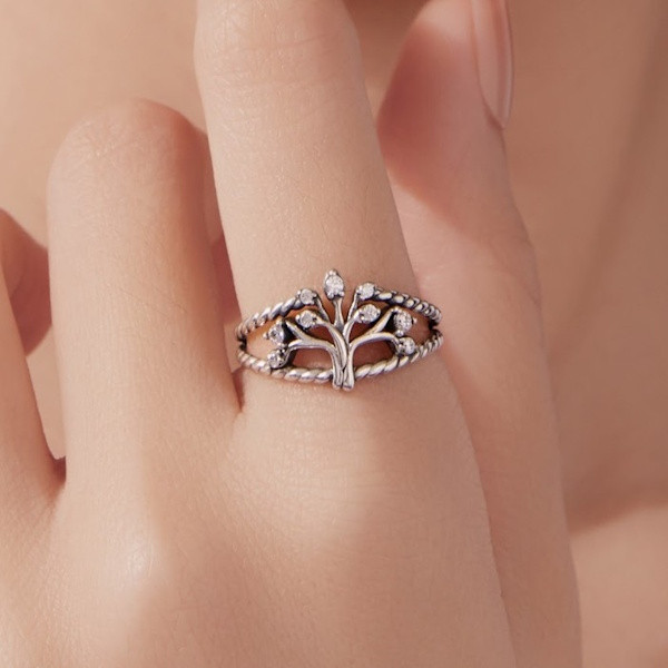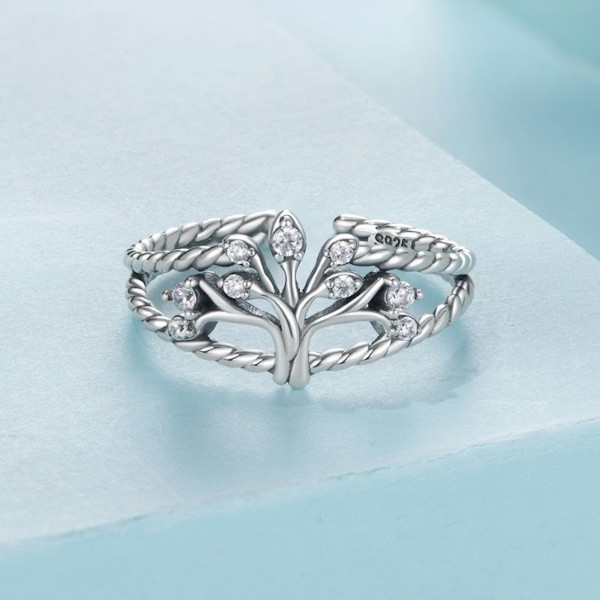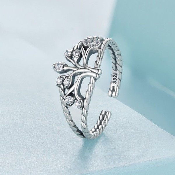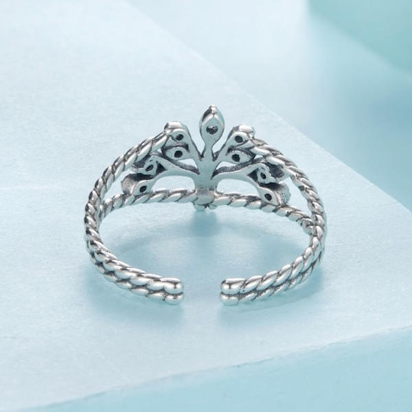 Oxidált ezüstből készült vintage stílusú, állítható méretű női gyűrű cirkóniumkristállyal. Szélessége 0.23-1.0 cm, súlya 2 g.