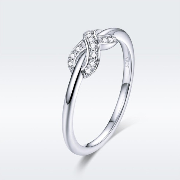 Ezüstből készült női gyűrű platinabevonattal és cirkóniumkristállyal. Szélessége 0.2-0.55 cm, súlya 1.9 g.