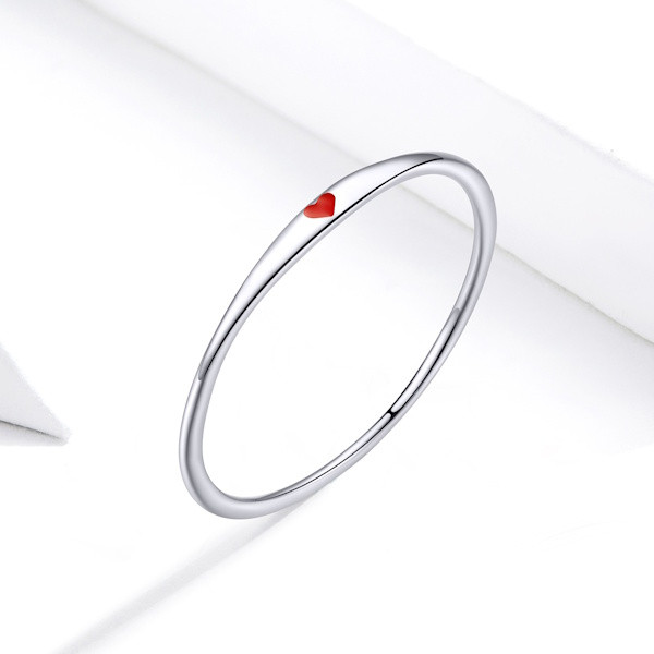 Ezüst eljegyzési gyűrű piros szívvel, 6-os méret