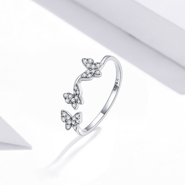 Ezüstgyűrű pillangókkal