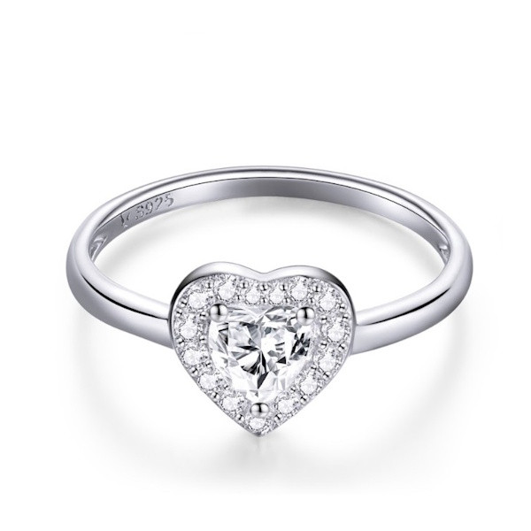Ezüstgyűrű, kristályos szív, 7-es méret